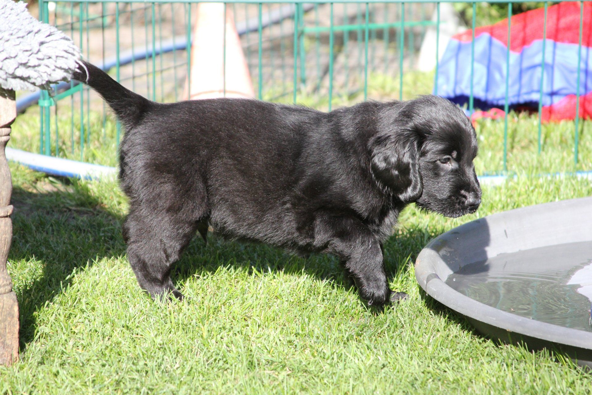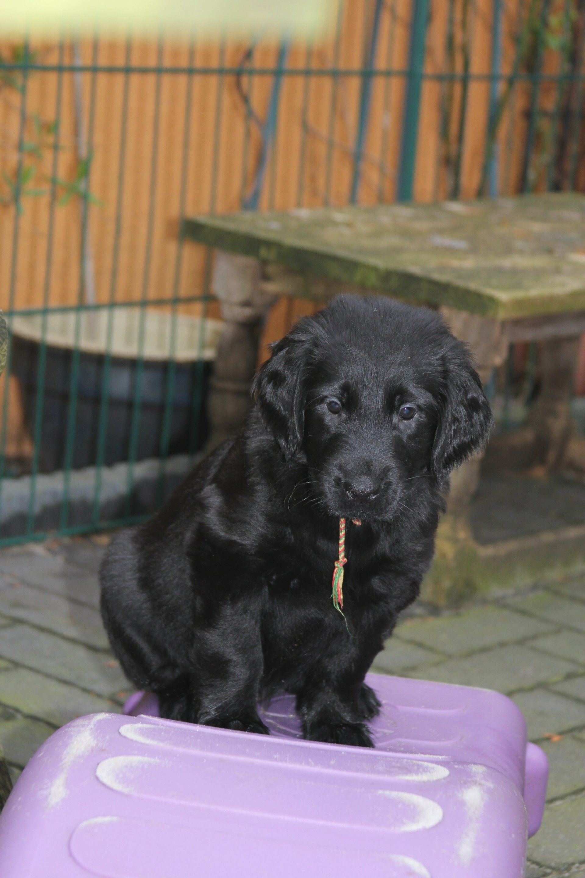 Und mit 7 Wochen machen wir einen Welpentest. Hier kommen die Welpen das erste mal in eine ihnen unbekannte Umgebung